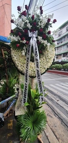 Funeral_Flower full of sorrowAs Shown:Gerbera, White Chrysanthemum & Orchid |