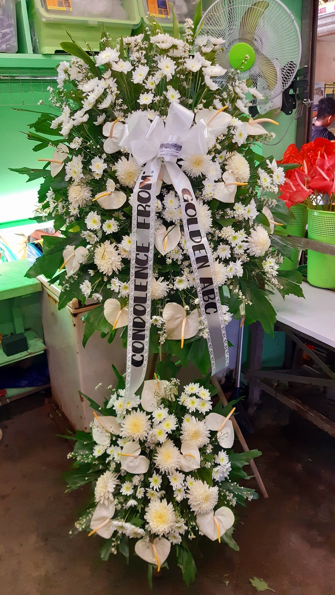 white Funeral Standing Spray